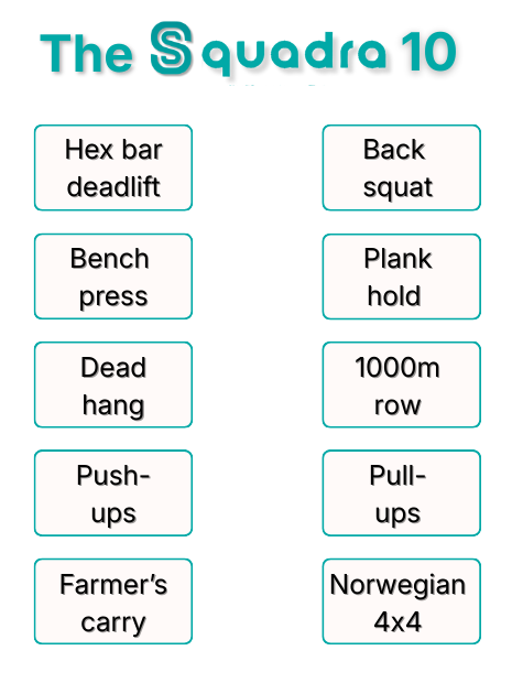 Squadra is for people serious about getting healthy or staying healthy — those willing to put in the work to achieve exceptional results. Right now in America, strong health isn’t the norm, so what we expect is exceptional dedication. It’s not about quick fixes or optimization hacks. It’s about hard work: consistent strength and cardio training, healthy eating, and honest accountability. Whether you’re starting from scratch or already in great shape, Squadra gives you the tools, support, and community to push yourself further.